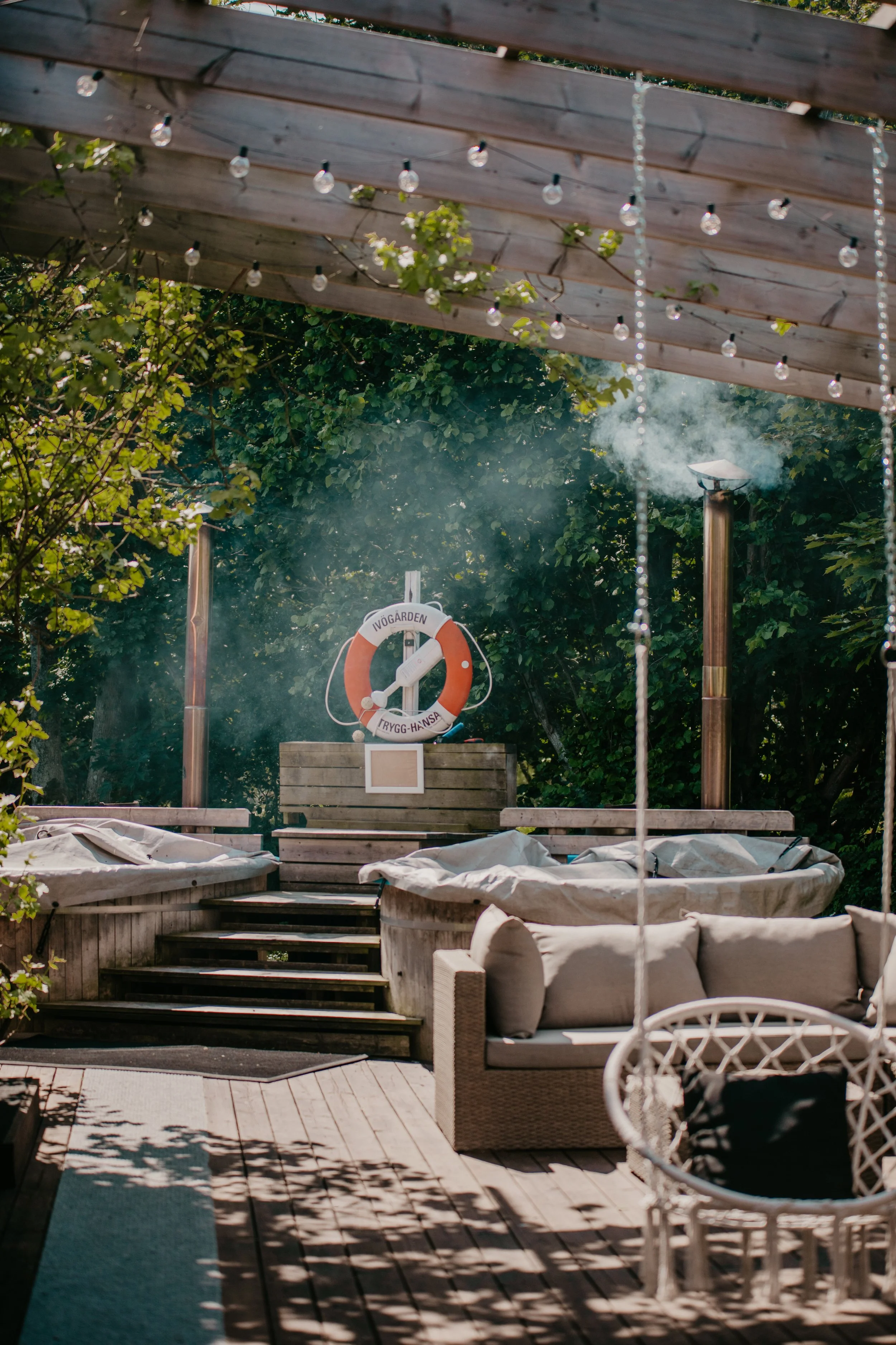 En rogivande oas där du får sjunka ner i värme och stillhet. Släpp vardagen för en stund och njut i vårt utebad med badtunnor, jacuzzi och hängstolar i en naturnära miljö där varje detalj andas lugn.